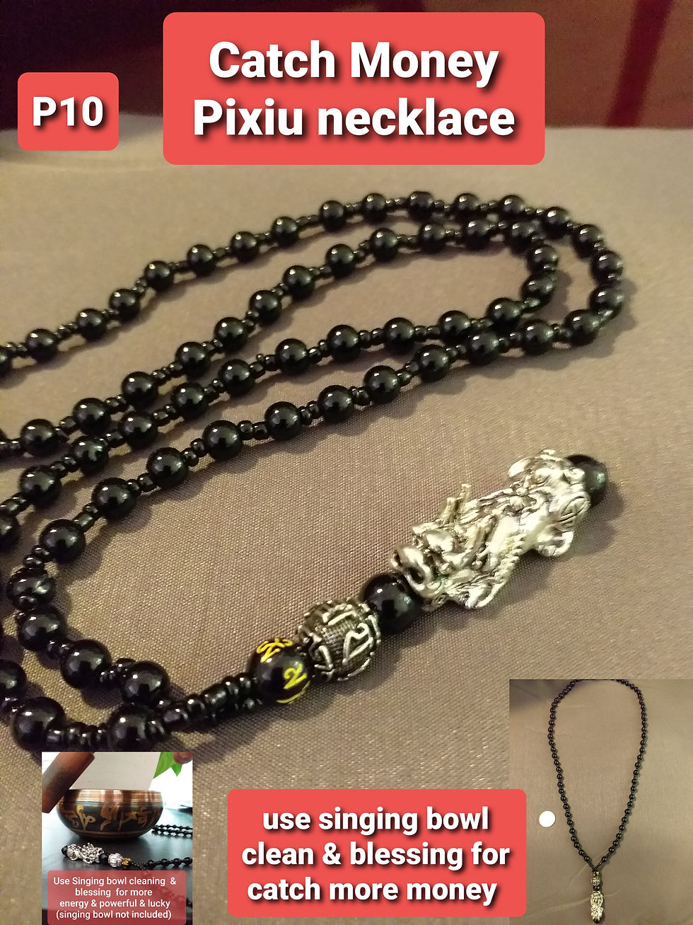 P10 catch money & Lucky pixiu necklace, I use singing bowl clean & blessing for